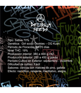 Variedad predominantemente índica, cruce de las californianas Girl Scout Cookie x la potente Og Face Off