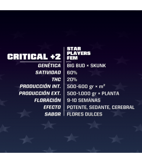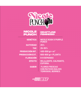 Nicole Punch Feminized, combinación de Nicole Kush y Purple Punch, es un híbrido predominantemente índico. Con un rápido periodo de floración de 65 días, destaca por sus cogollos densos y resinosos. Los terpenos...