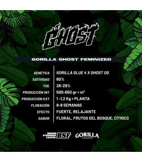 Gorilla Ghost Fem, es el resultado del cruce de dos cepas originarias de Norteamérica; como madre nuestra campeona Gorilla Glue #4, y como padre una de las variedades más populares de USA de todos los tiempos, la...