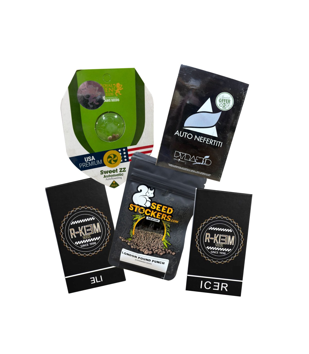 Optimiza tu inventario con este pack estratégico que reúne los Best-Sellers de Royal Queen Seeds, Pyramid Seeds, R-Kiem y Seedstockers. Diseñado para maximizar el margen de beneficio, este lote combina formatos de alta demanda (3 y 5 uds) con un formato de volumen (50 uds de Nefertiti Auto) ideal para clientes profesionales. Una solución integral que garantiza rotación y prestigio en tu catálogo.