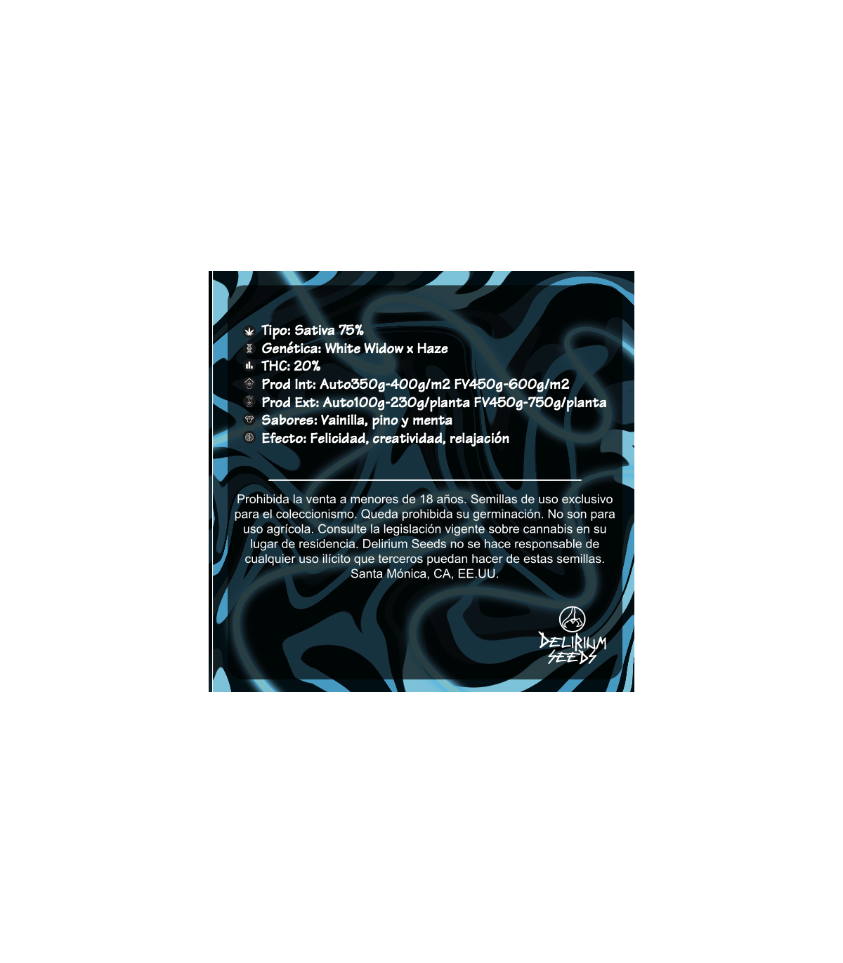 Una cepa clásica, poderosa y fácil de cultivar gracias a su resistencia a hongos y enfermedades. Al ser una Planta sativa, puede alcanzar una altura considerable. Una de las variedades más productivas y energéticas que te dejará con una sonrisa, te sentirás en paz y con buena vibra. Tendrás la energía para terminar lo que tenías pendiente. Puede producir Psicodelia dada su composición. Desde la parte medicinal es ideal para personas que tienen fatiga, dolor y poco apetito. Con un sabor y un aroma adictivo a limón, vainilla y madera. Podrás disfrutar de un buen momento y una subida satisfactoria.