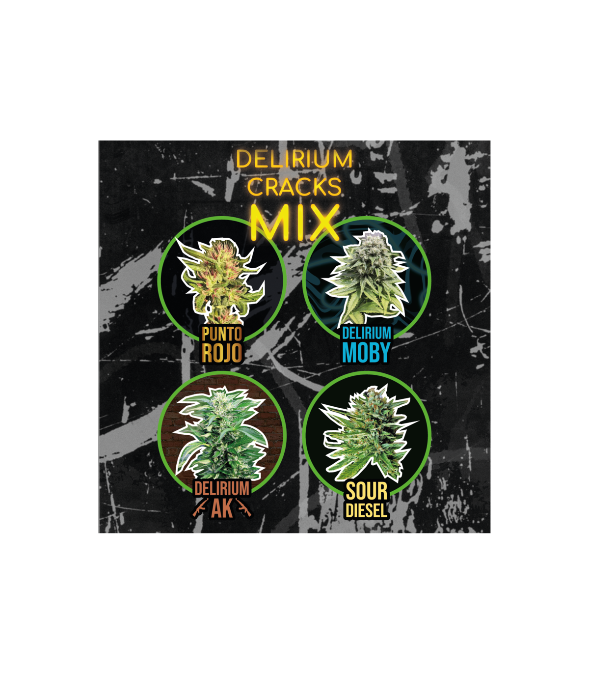 Un mix que te permitirá tener lo mejor de todos los mundos, grandes producciones con sabores e intensidad en la subida, euforia y creatividad. Sabores terrosos, tropicales y exóticos. Desde la exótica punto rojo a una de las grandes y productivas clásicas como es Delirium Moby.