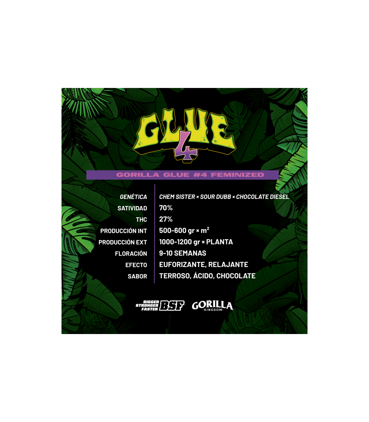 En BSF SEEDS reservan un lugar especial para la joya de su equipo, Gorilla Glue #4. Consiguieron un clon de esta cepa gracias a las colaboraciones con colectivos de California. Luego de probar su impresionante potencia y efecto, no pudieron evitar llamarla “La Nueva Bestia de California”, una variedad que en muy poco tiempo se ha vuelto todo un clásico.