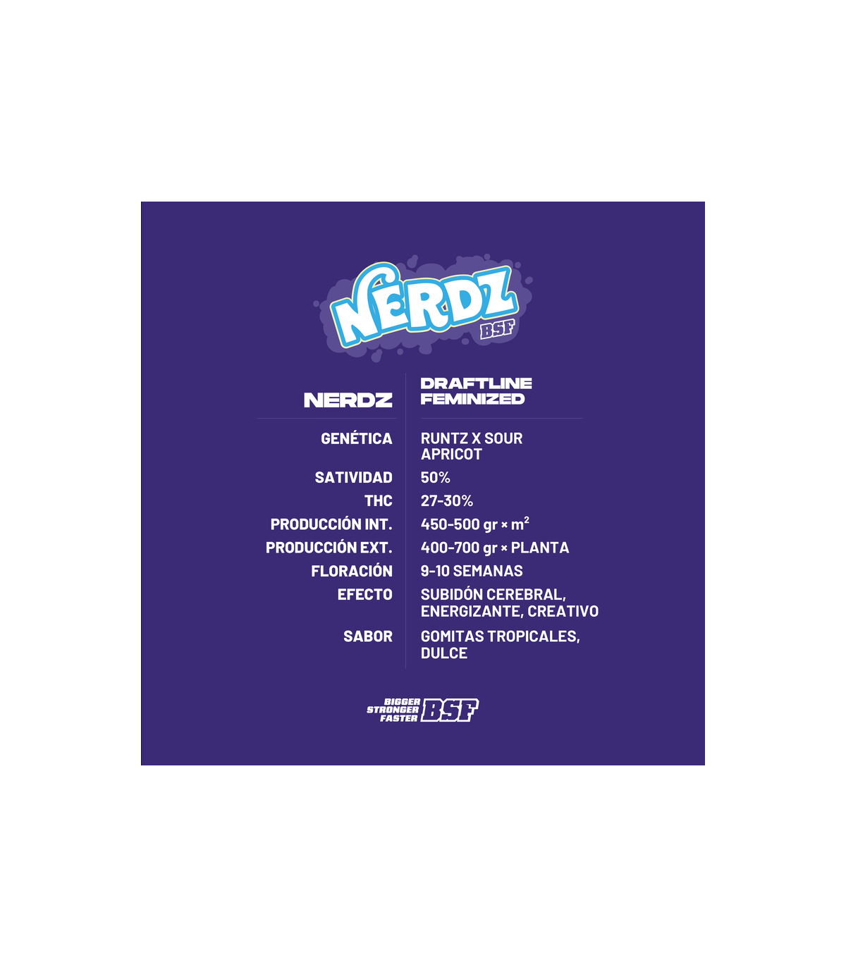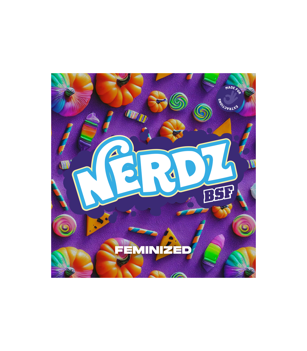 Nerdz Feminized es la variedad ideal para extracciones, gracias a sus terpenos que recuerdan a dulces de gomitas tropicales, los cuales se expresan de manera distintiva en los concentrados. Su alto retorno y facilidad para trabajarla la convierten en la aliada perfecta para ganar copas.