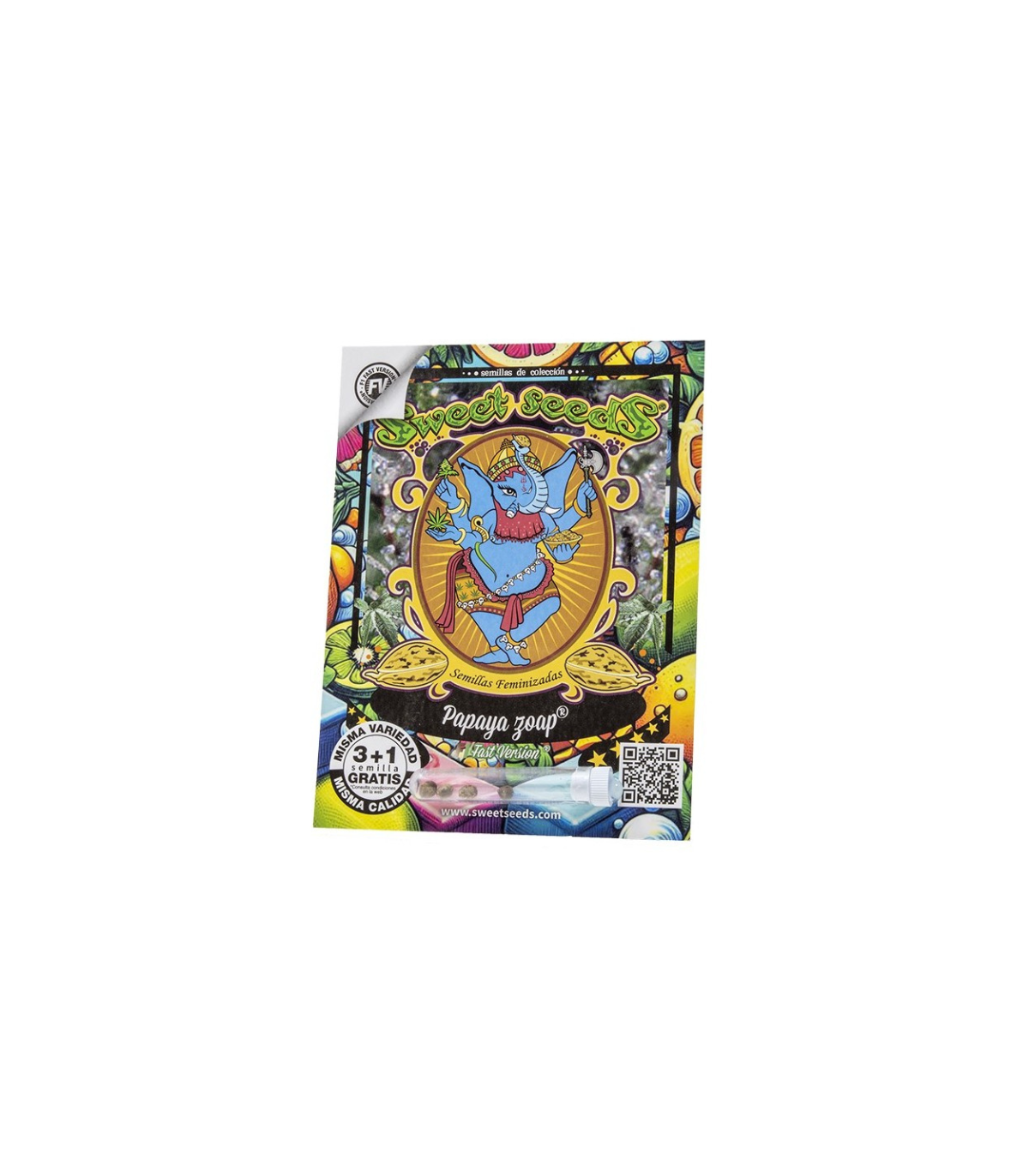 Variedad feminizada y fotodependiente de floración ultrarrápida. Polihíbrido resultante del cruce de 4 variedades con genética originaria de USA de la más alta calidad [Bruce Banner Auto® x Papaya] x (Zkittlez x Zoap).