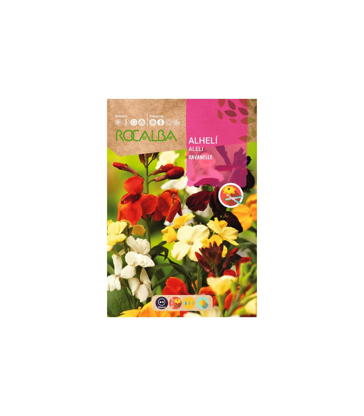 Crucífera. Planta bisanual muy resistente, de tallo erecto, hojas lanceoladas y flores reunidas en racimos terminales de colores variados y cálidos. Se utiliza tanto en la formación de macizos y grupos de color como en adorno de balcones, terrazas, etc.