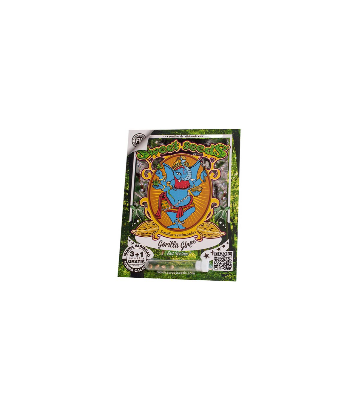 Versión fotodependiente, feminizada y de floración ultrarrápida, de la Gorilla Girl®, la variedad “Super Strong” más potente del catálogo de Sweet Seeds®, hasta 31% de THC. Resultado del cruce entre la potente Gorilla Girl® y Sweet Gelato Auto®.
