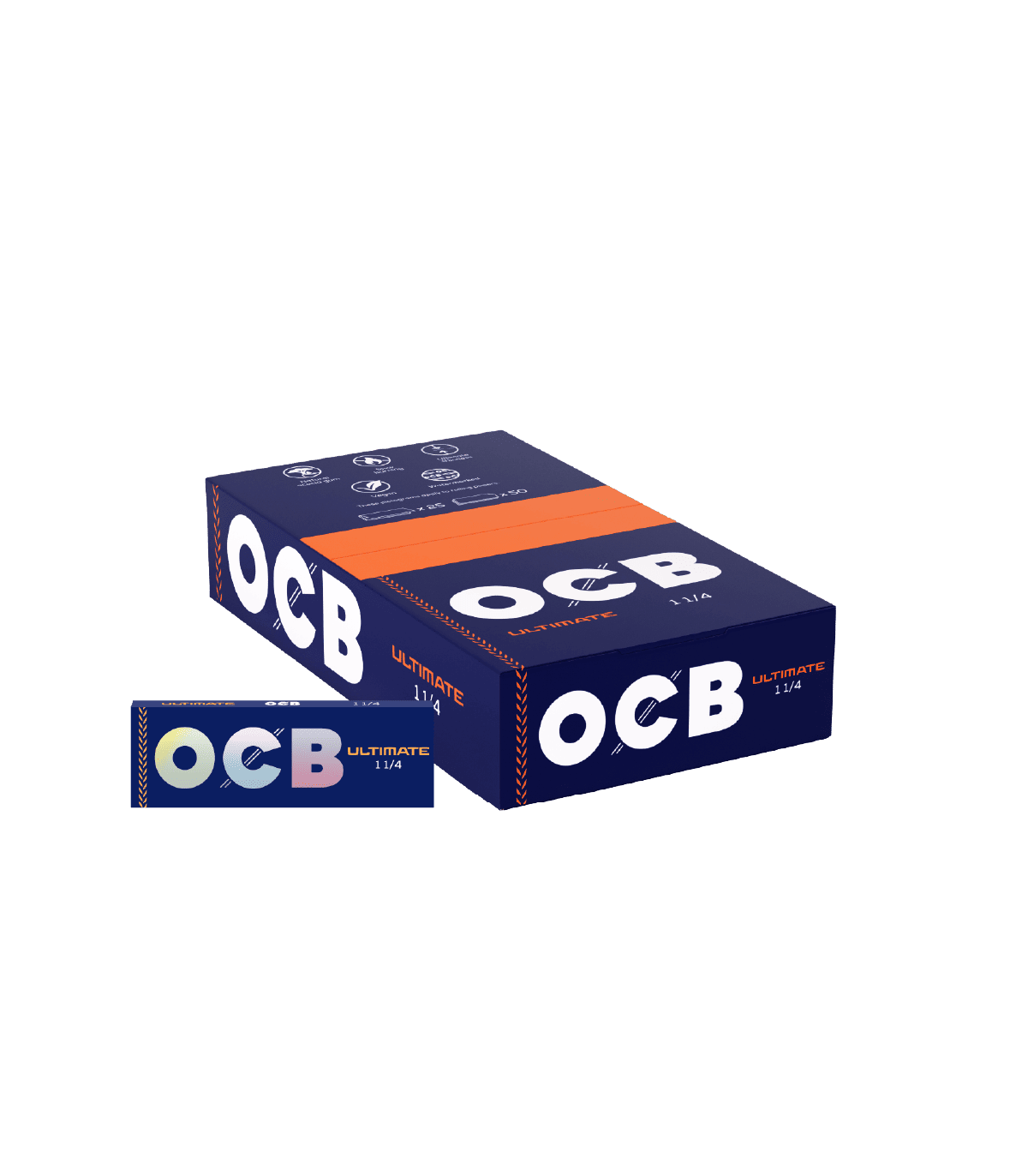 Display de 25 unidades de papelillos OCB Bamboo para enrolar o liar de tamaño 1 1/4. Papel ultrafino, de combustión lenta, con goma vegetal natural.